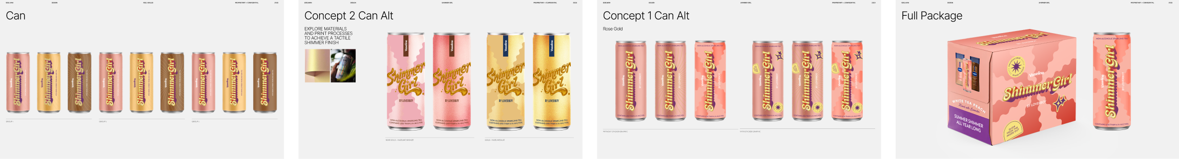 The overall execution was elevated through exploration of materiality, texture, and detail. Hand-drawn typography was enhanced with AI-integrated VFX to achieve a tactile, gel-like finish that echoed the product’s shimmer. Holographic print materials delivered all-over shine, while spot gloss treatments on both the can and box added depth, contrast, and a premium, high-impact finish.